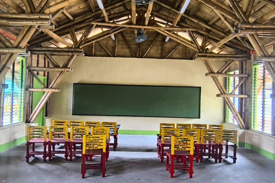The 175-sqm, two-classroom school building was constructed using BASE’s proprietary Cement-Bamboo Frame Technology (CBFT) combined with a bamboo truss system.  This innovative design offers safer, more sustainable, and disaster-resilient learning spaces. Designed to meet the Department of Education’s (DepEd’s) standards, each classroom also doubles as an evacuation center during typhoons, reflecting a proactive approach to community safety.